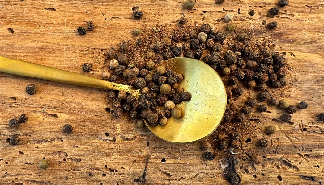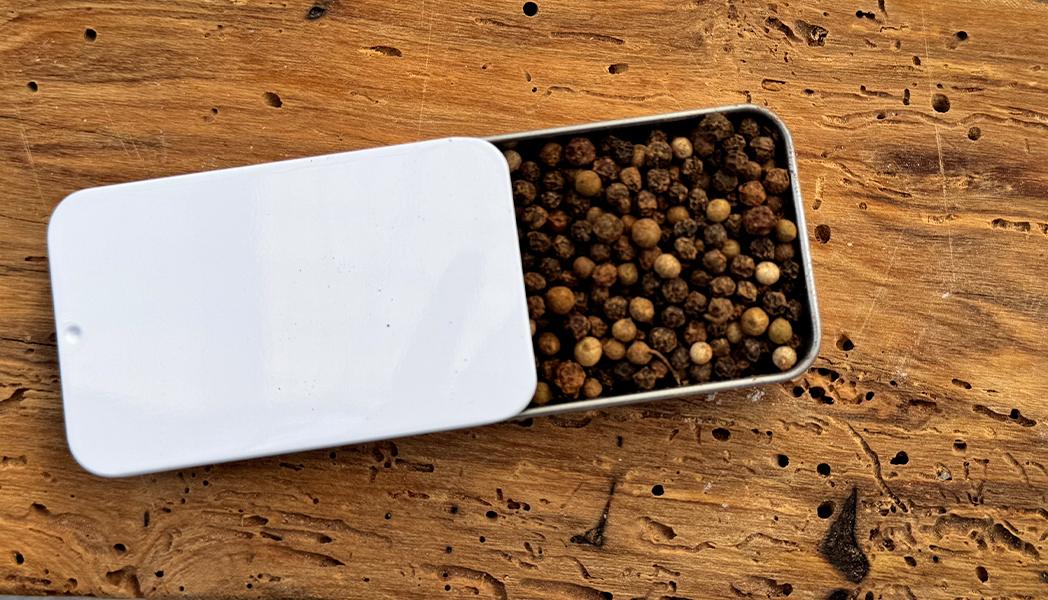 (Salt Free) Pure peppercorn—engulfed in Herbal-Roots Cinnamon Basil Vanilla Pie Spice. A unique blend of sweet and spicy elements, reminiscent of pumpkin pie spice, but with more angst and peace. Centered on unlocking flavor from spent cinnamon basil blooms—seemingly wilted flowers on the brink of shedding seeds—these are toasted alongside seasonal pie spices, releasing rare peppery-floral tones that mingle with nutmeg, cinnamon, and deeper notes of pepper, mace, and ginger. This spice mix carries intentional, historical Middle Eastern character, as if made for a sultan. Vanilla powder and almond extract fold into robust autumn herbs—sage, bay leaf, and camphor thyme—while burnt orange zest dances through. Sweet and spicy cinnamon, Thai, and purple basil leaves add subtle peppery-licorice sweetness, with toasted clove and tempered anise undertones. All of this absorbs into a myriad of smoky, floral, pungent, earthy, musty peppercorn varieties. With each grind, an explosion of warmth, spice, and life is released. Beef and bean broth adore this spiced pepper. But do explore, flip the script—use it in your fall baking and generously flicker your bird skin with it too.