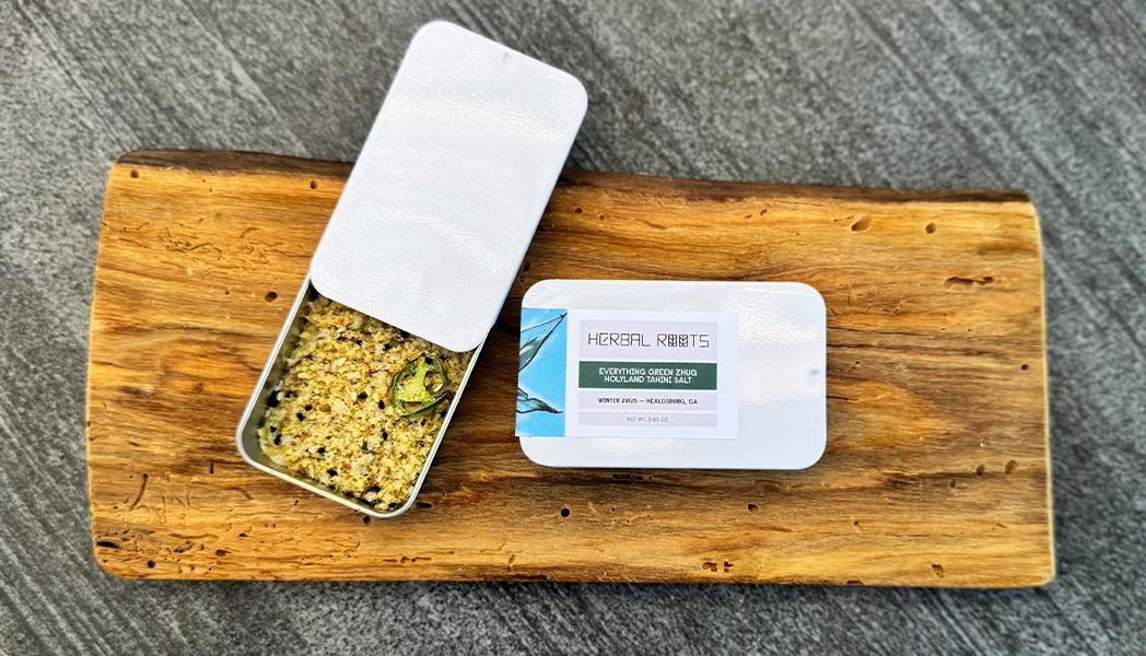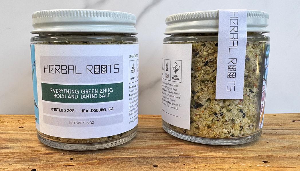 This pays homage to the herbal holyland that shaped and amplified my herbal artistry, its bold, direct, and generous — the same forces unearthed in me all those years ago in Israel. Like Israelis, it gets straight to the point —pleasant complexity. It dissolves only to rebuild itself, over and over— flavor by flavor, seed by seed — each ingredient attempting to be more powerful yet never singular, nor oversimplified. It’s a coalition, a communal supporting of intricate entanglements. Cooling hot serrano heat, herb-tamed vibrancy, soft sesame intensity; green, seedy and defiant. Spicy and vibrant Yemeni Zhug Tahini made with sweet Ethiopian seeds is a vexed magic carpet, symbolizing the ancient act of grinding and winter’s friction to wakes what’s dormant. Proof that cultures and flavors wander, fuse, shape. Sesame seeds, black and white, comingling liberally with the coated salt flakes, adding to the convolution— mirroring the region’s long, complicated coexistence, also a nod to Brooklyn’s everything bagel. Nigella seeds of blessing sprinkled adequately give more intensity, more pleasant bitterness, a wake up to remind Americans of the potent, nature-forward flavor and reality of bitterness Middle Easterners are accustomed to. Minty, earthy, oniony, rebellious herbs power this paradox of fresh and light and potent and fierce. A taste of cultural terroir, ancient yet somehow just a snapshot from one herb girl’s passing through. This is not sidestepping politics, it’s a tasting of coalescence. This is your winter breakfast salt — eggs, shakshuka, avocado toast. It’s your falafel, roasted cauliflower, sabich and salmon salt — your power-and-complexity-on-everything salt.